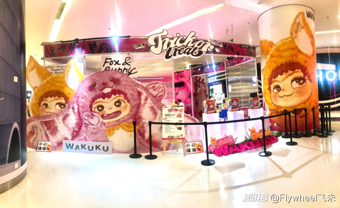 同月,WAKUKU開設(shè)了自營(yíng)快閃店,首站選在了IP潮玩類門店最為密集的北京朝陽大悅城,進(jìn)一步將WAKUKU的熱度推上又一個(gè)高峰。