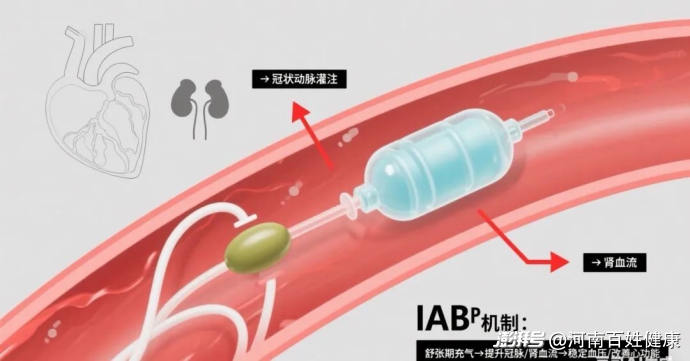 置于主動(dòng)脈內(nèi)的氣囊,精準(zhǔn)地在心臟舒張期充氣,增加冠狀動(dòng)脈和全身重要器官(尤其是腎臟?。┑难鞴嘧?。
