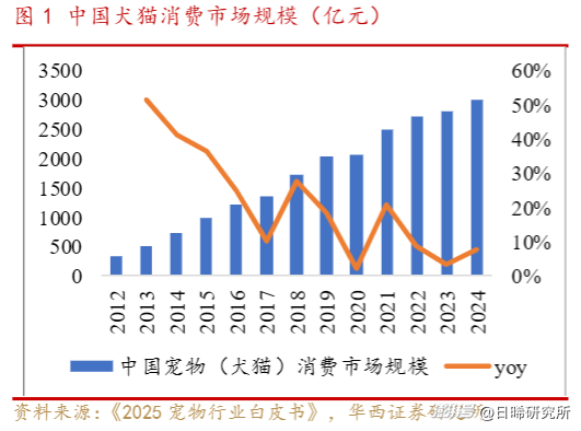 根據(jù)《2025寵物行業(yè)白皮書》,2024年中國城鎮(zhèn)寵物消費(fèi)市場規(guī)模達(dá)到3002億元,同比增長7.5%,并且隨著人們生活水平持續(xù)提高,人們毫無保留地將自己的情感傾注在寵物身上。