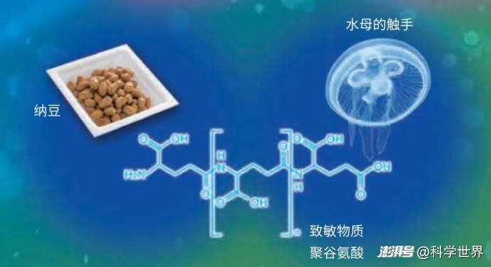 例如,有些人喜歡沖浪,但某天吃了納豆之后卻出現(xiàn)了過敏癥狀。這種突然對納豆產(chǎn)生過敏的情況,其實(shí)是由水母引起的。水母的觸手中含有一種名為聚谷氨酸(PGA)的物質(zhì),當(dāng)人被水母刺傷時(shí),PGA便會(huì)通過皮膚進(jìn)入人體內(nèi)部。隨后,免疫系統(tǒng)開始對PGA產(chǎn)生過敏反應(yīng)。由于納豆的黏性部分也含有PGA,因此被水母刺傷之后,人們可能會(huì)對納豆產(chǎn)生過敏反應(yīng)。