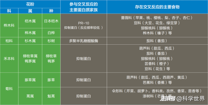 花粉和食物發(fā)生交叉反應(yīng)的主要組合