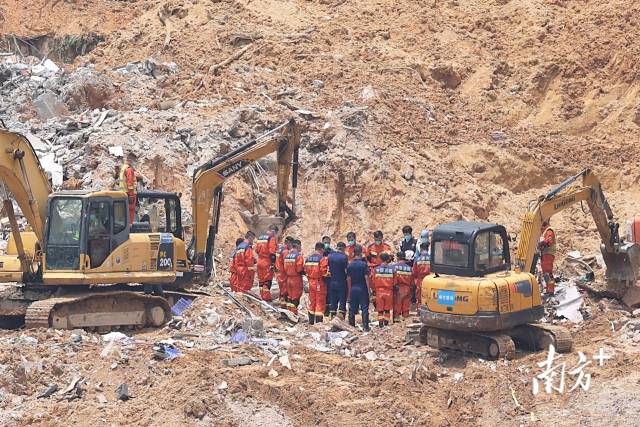 8日中午12時許,南方+記者在白云區(qū)大源村山體垮塌救援現(xiàn)場看到,第14名被困人員被發(fā)現(xiàn),這是最后一名被困人員。截至目前,14名被困失聯(lián)人員已全被發(fā)現(xiàn)。