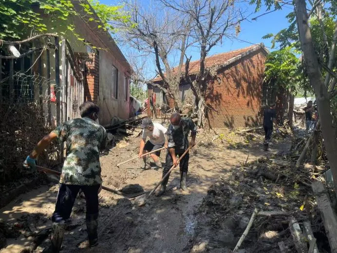 ▲承德市十八盤(pán)村村民在生活區(qū)域開(kāi)展淤泥清理