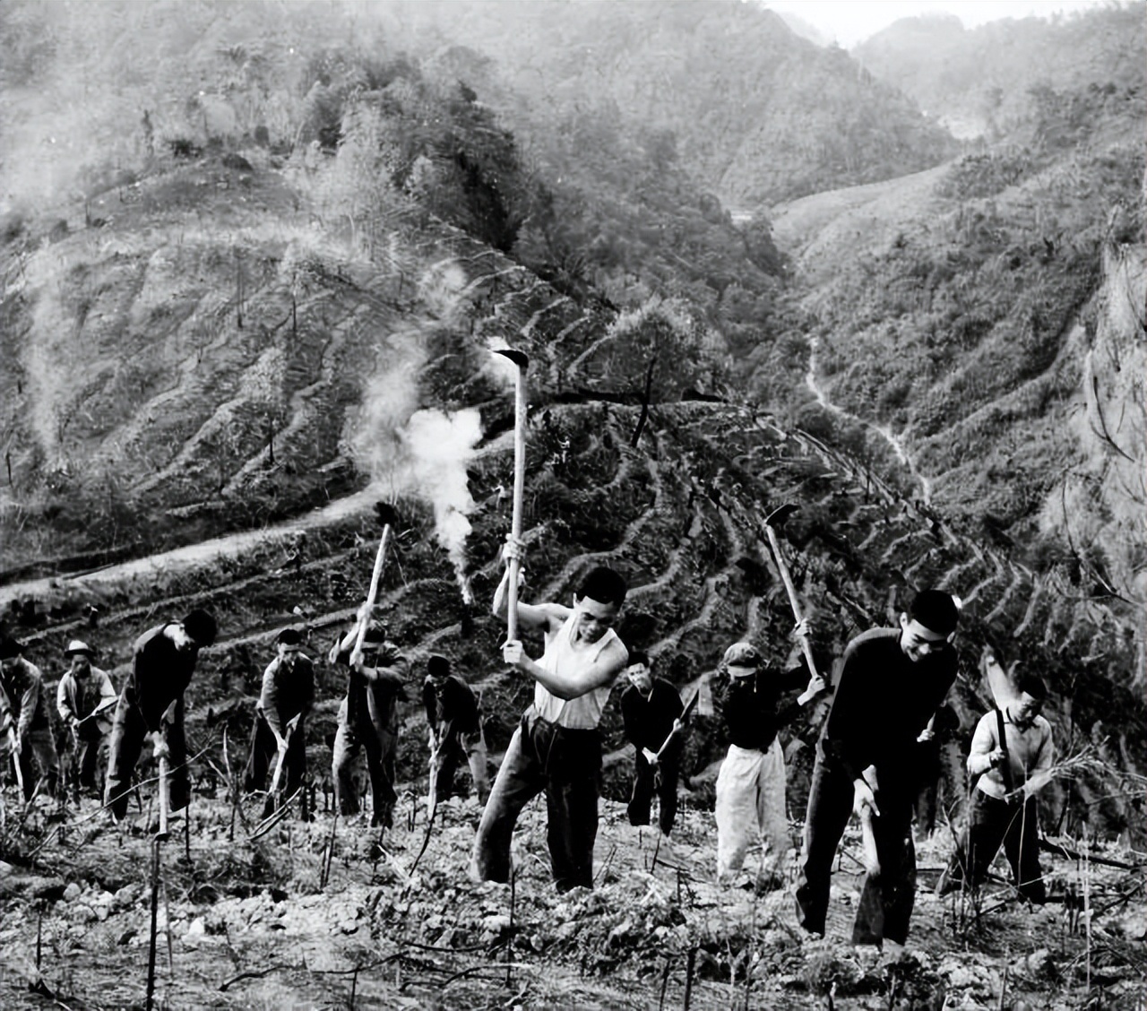 “大會戰(zhàn)期間,民兵們早上5點出發(fā)上山,砍樹、修筑防火線、燒山煉山、扛著鋤頭挖撩壕?!?/p>