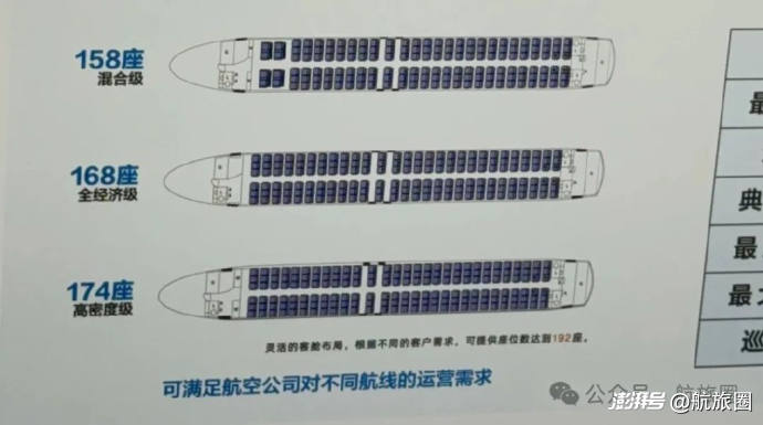 C919-600主要通過縮短機身和實施高原改裝滿足高原地區(qū)運輸要求,座位數(shù)為140-160座。
