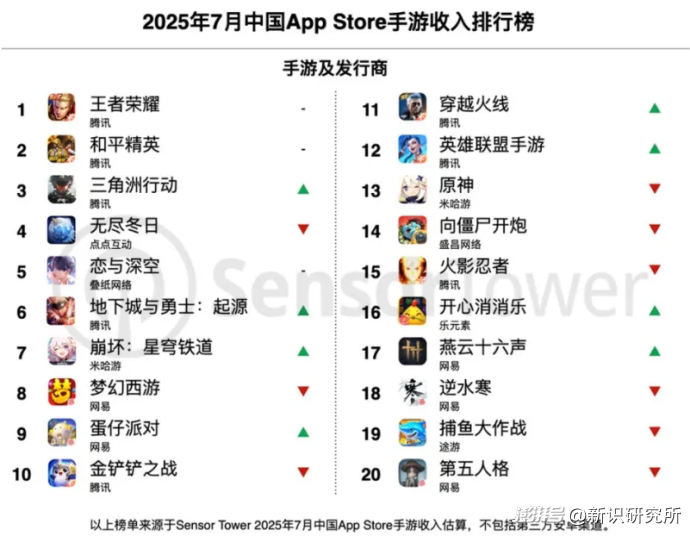 而騰訊聚焦長青游戲也取得不錯的成績。據(jù)Sensor Tower的統(tǒng)計,今年7月騰訊游戲收入環(huán)比增長20%,《王者榮耀》《和平精英》及《PUBG MOBILE》貢獻顯著,其中《三角洲行動》iOS端收入暴漲166%,帶動整體表現(xiàn)。