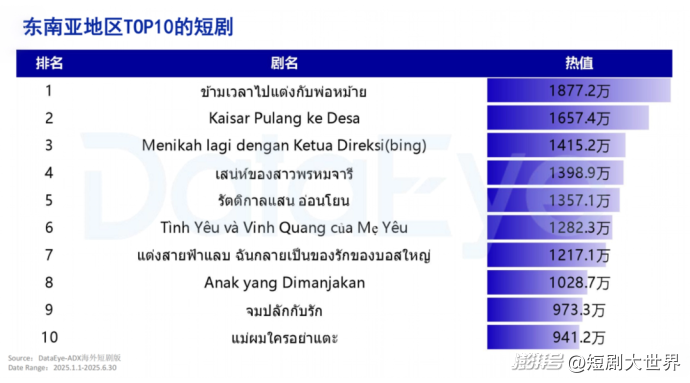 2025年H1東南亞地區(qū)top10短劇排行榜