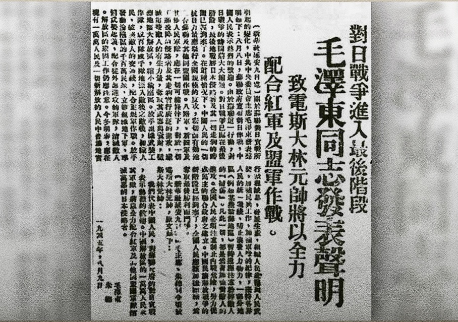 劇照 1945年8月9日,毛澤東發(fā)表《對(duì)日寇的最后一戰(zhàn)》聲明
