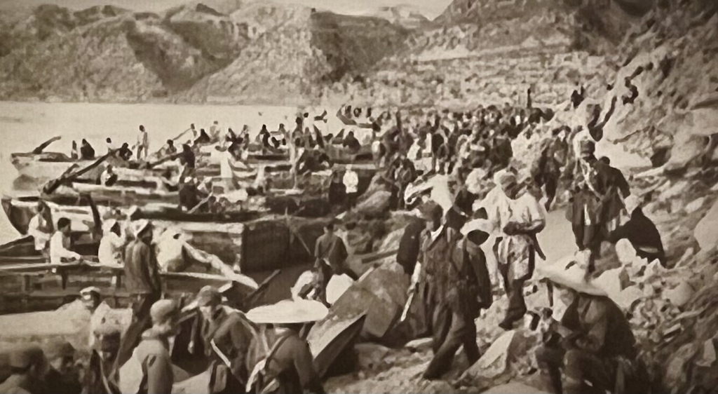 于鵬:從畫面上來(lái)講,我們積極嘗試使用了一些新的CG動(dòng)畫技術(shù),還有對(duì)老膠片的修復(fù)技術(shù),讓畫面更加鮮活可感。比如由一張黑白照片,通過(guò)對(duì)其中的人物展開合理的想象,讓他變成一段活生生的歷史當(dāng)中的人。像八路軍東渡黃河,挺進(jìn)華北抗戰(zhàn)前線這么重大的歷史事件,現(xiàn)在留下的照片是很少的,更不要說(shuō)影像了.我們的辦法是盡量收集親歷者的回憶錄和日記去構(gòu)建當(dāng)時(shí)的場(chǎng)景,有沒(méi)有下雨?有沒(méi)有大浪?多少人擠在一個(gè)船上面?有沒(méi)有小戰(zhàn)士?完全是根據(jù)這些回憶錄里的記述,經(jīng)過(guò)相互佐證,然后用了一種動(dòng)畫的形式去表現(xiàn),實(shí)際上基礎(chǔ)底稿是油畫,我們希望它更粗糲一點(diǎn),更有質(zhì)感一點(diǎn),顆粒感更強(qiáng)一些,是在油畫的基礎(chǔ)上再去做動(dòng)畫上的處理。