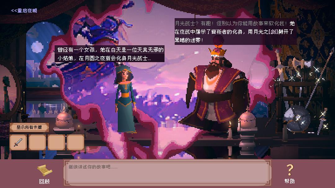 反正,要點(diǎn)就在于通過對(duì)話,讓國(guó)王理解你說的故事,并根據(jù)“段落大意”而生成武器。