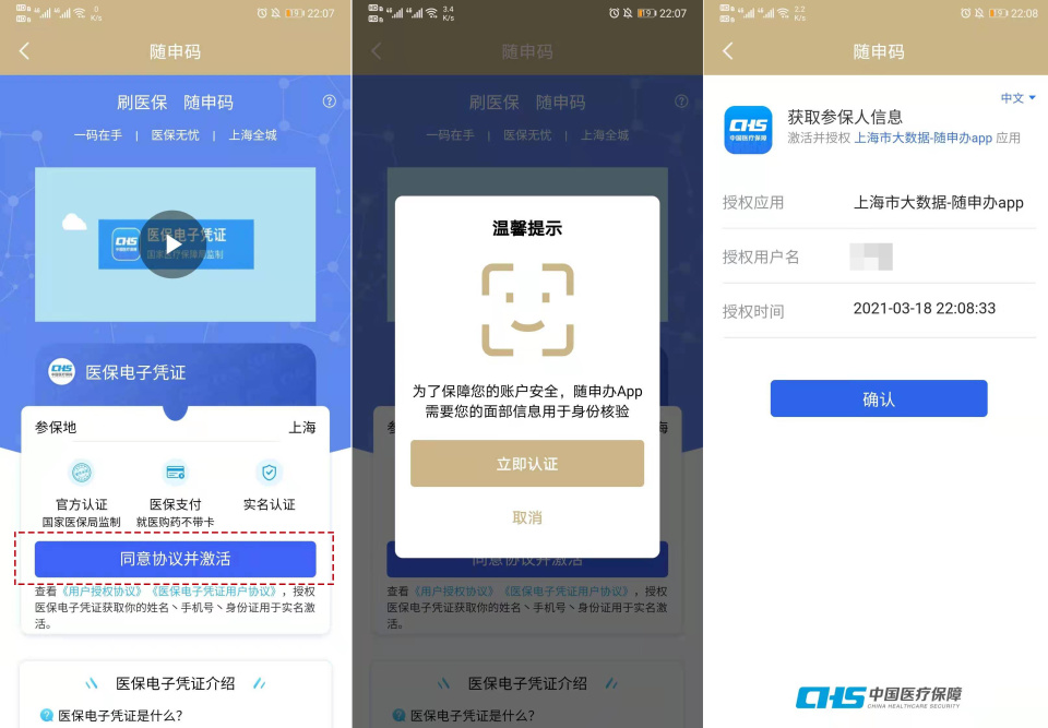 首次使用時,點擊“同意協(xié)議并激活”→掃臉認(rèn)證→確認(rèn)信息后,即可開通“醫(yī)保電子憑證”服務(wù);