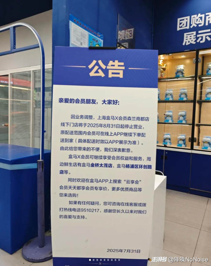 ▲盒馬X會員店上海森蘭店的閉店公告