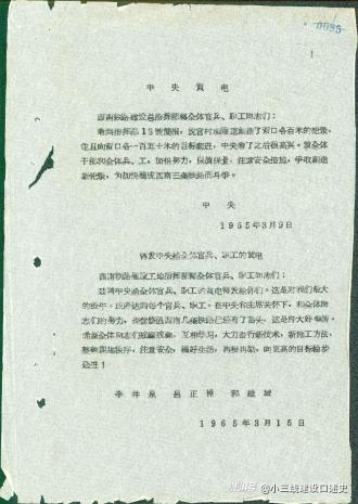 1965年中共中央關(guān)村壩隧道創(chuàng)造雙口各百米賀電,中鐵二局藏