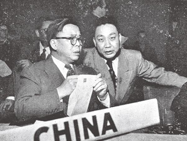 1945年,蔣廷黻出任中華民國常駐聯(lián)合國代表。圖為他與同為獨(dú)立評論社社員的陳之邁。