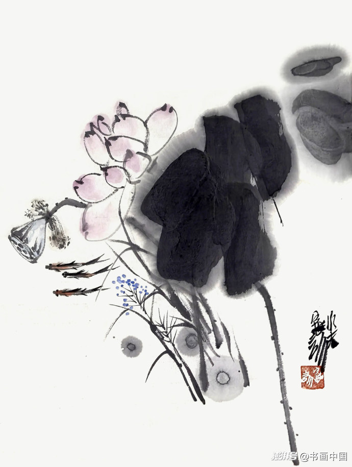 荷花入畫,自古便是中國文人的精神圖騰。從徐渭的狂放潑墨到八大山人的孤高清逸,荷花在筆墨間承載著千年文脈。當代畫家王家訓的寫意荷花,既承續(xù)了傳統(tǒng)文人畫的精神內(nèi)核,又以鮮活的生命感與時代性,為這一經(jīng)典題材注入了新的意趣。