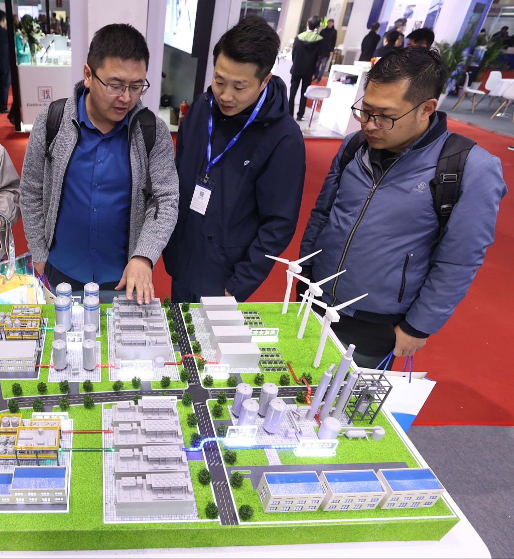 2024年3月27日,北京,2024中國國際清潔能源博覽會上,觀眾了解綠色甲醇的工藝流程模型。