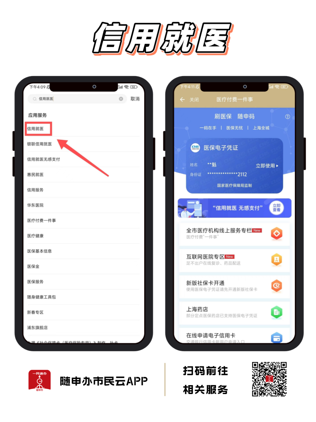 “隨申辦市民云”APP使用【信用就醫(yī)】服務(wù),繳費(fèi)不排隊(duì),先就醫(yī)后付費(fèi)。