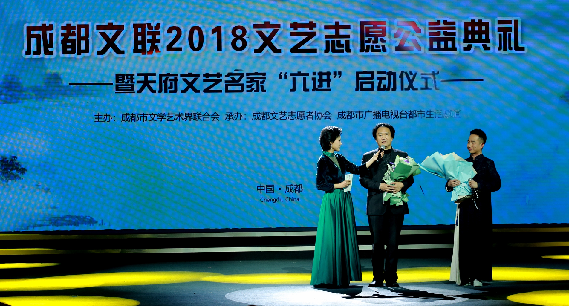 “成都是我家,成都是我家,走進(jìn)了成都就走進(jìn)溫暖的家。”2018年12月3日,趙迎在《成都文聯(lián)2018文藝志愿公益典禮暨天府文藝名家“六進(jìn)”啟動(dòng)儀式》上,演唱了由解明月作詞,敖昌群作曲的《成都是我家》。他那猶如芙蓉般綻放的歌聲,將成都唱進(jìn)了每個(gè)人的心懷。