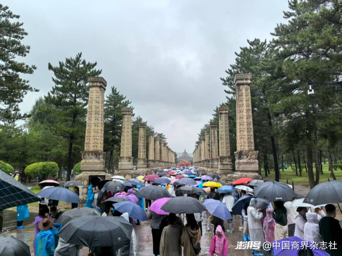 山西大同云岡石窟景區(qū)內(nèi)游客如潮,雨天也無法阻擋人們出游的熱情。