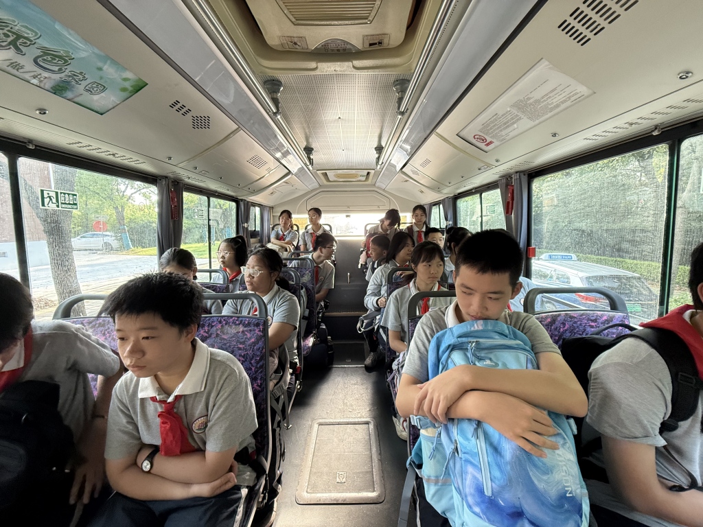 中學(xué)生們坐上定制公交。 澎湃新聞記者 鄒娟 實習(xí)記者 林資翔 攝