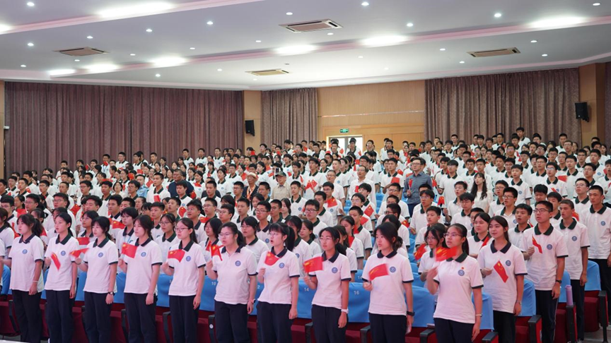 9月1日,上海市嘉定區(qū)第一中學(xué)“開學(xué)第一課”,全體師生用嘹亮的歌聲表達愛黨愛國情懷。 校方供圖