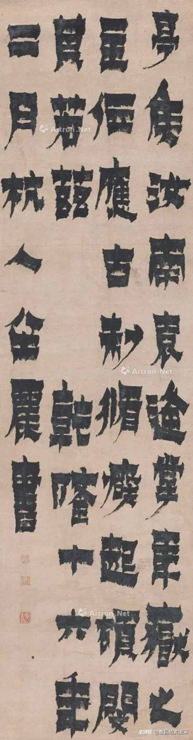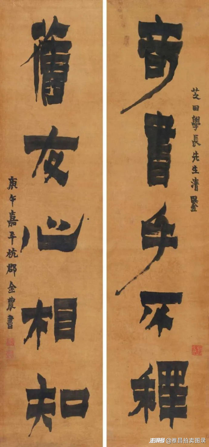 庚午(1750年)作 漆書五言聯(lián) 立軸