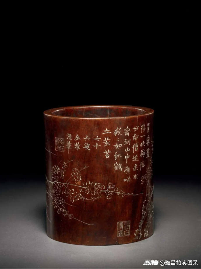 清 黃花梨金農(nóng)銘梅花詩(shī)文筆筒