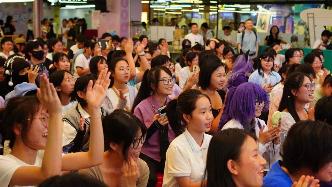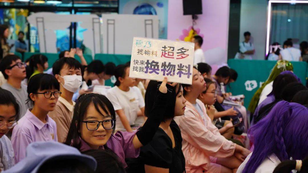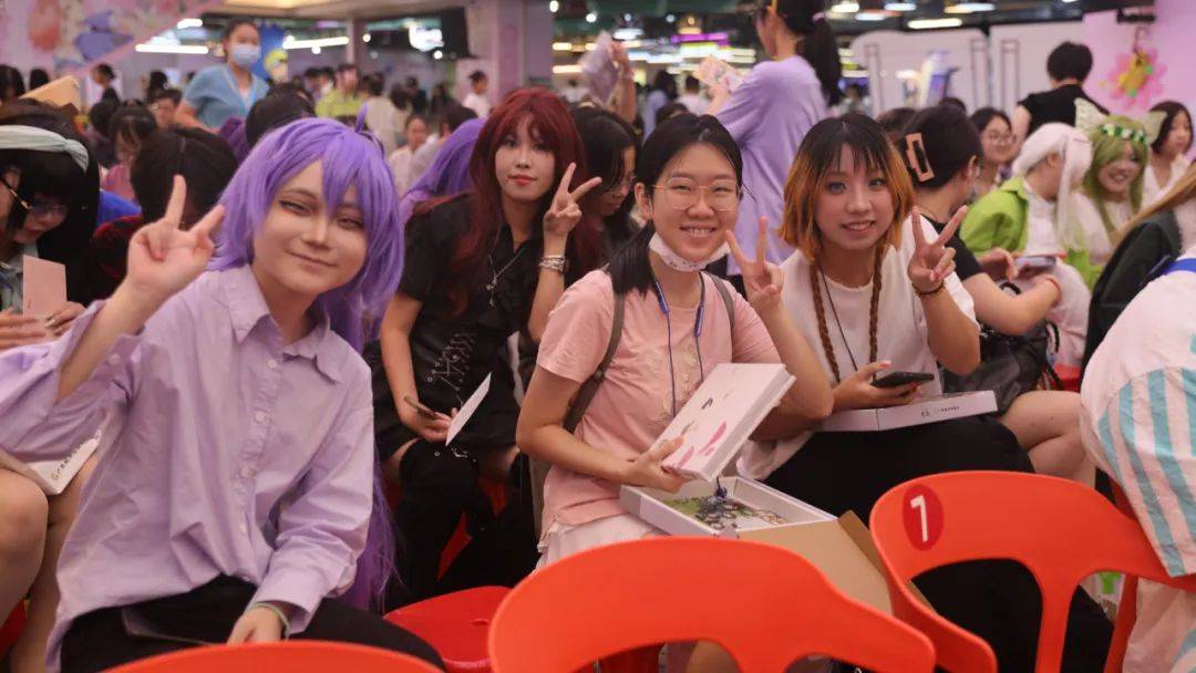 8月的廣州熱浪翻涌,而地王廣場負三層的氛圍比天氣更熾熱。8月17日下午,一群年輕的面孔擠滿舞臺中庭,他們身著精致的cos服,背著扎滿吧唧的“痛包”,在立牌前打卡合影。