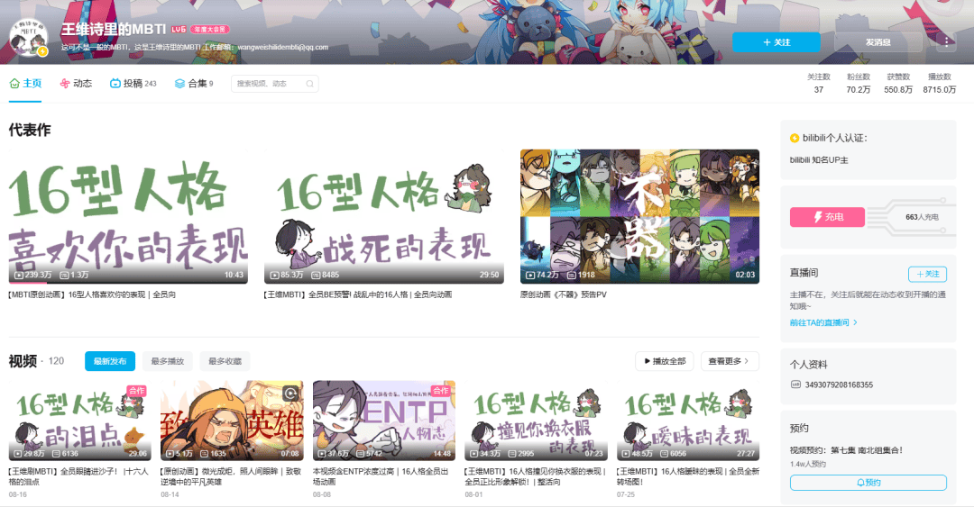 “王維詩里的MBTI”這個賬號是由王元元和維基一起創(chuàng)建的。二人原是高中舍友,因為有著MBTI這個共同話題,性格迥異的她們走到了一起,再加上王元元大學讀的是動畫專業(yè),二人一拍即合,決定創(chuàng)作關于MBTI的搞笑動畫。最初創(chuàng)立賬號時,王元元和維基主要是從二分法去切入,對16人格進行趣味分析。她們的粉絲大多是年輕的“Z世代”群體,他們渴望自我探索,開始思考“我是誰”“我將會成為什么樣的人”等問題,希望在紛繁的外部世界尋求到自我定位。王元元和維基制作的16人格解讀動畫,成為“Z世代”群體進行自我探索的方式之一。