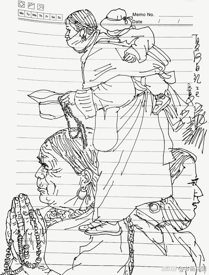 王家訓(xùn)的人物速寫作品,以其獨特的線條語言、巧妙的構(gòu)圖方式和深厚的人文關(guān)懷,展現(xiàn)了速寫藝術(shù)的魅力與價值。他的創(chuàng)作實踐告訴我們,藝術(shù)的真諦不在于技法的繁復(fù),而在于對生活的敏銳觀察和對情感的真實表達。