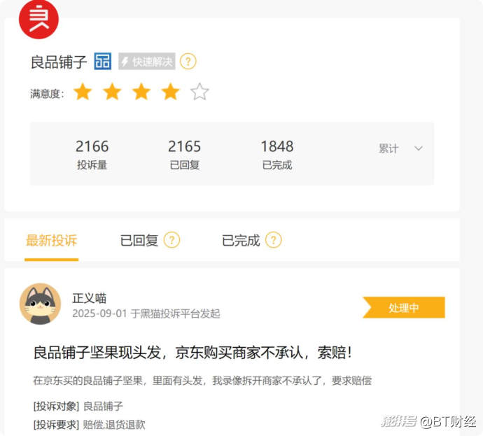 黑貓投訴顯示良品鋪?zhàn)永塾?jì)投訴超過(guò)2000條,基本都是產(chǎn)品質(zhì)量問(wèn)題。