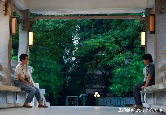 聲效設計構(gòu)成影片另一重敘事維度,創(chuàng)造以“沉默的轟鳴”為特征的聽覺景觀。片中人物對話的音量被刻意壓低,有時甚至被環(huán)境音淹沒,在市場重逢戲中,攤販的叫賣聲、刀具的剁肉聲、孩童的哭鬧聲形成的聲墻,將辛芷蕾與張頌文欲言又止的對話擠壓成片段式的耳語,這種處理既符合現(xiàn)實邏輯,又形象地表現(xiàn)溝通的艱難。更精妙的是對日常聲音的戲劇化運用,張頌文反復修理的老舊座鐘,其走時聲隨著劇情推進從清晰變?yōu)槟:?,直到最終停擺,這個聲音線索不僅標記著角色心理狀態(tài)的變化,更成為時間創(chuàng)傷的聽覺隱喻,就像那臺座鐘,有些傷痛會讓時間本身失去意義。