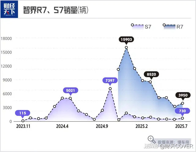 其實在這次改款前,智界S7經(jīng)歷過三次上市,智界R7更是在今年4月才進(jìn)行了首次換代更新,只是這些動作對實際銷量沒有太大幫助。
