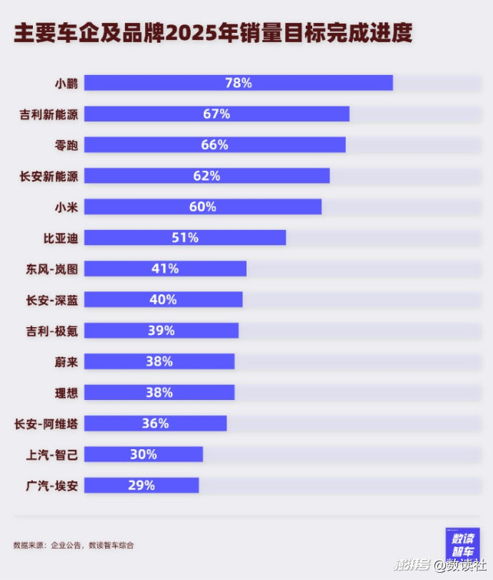 吉利、零跑、長安則是憑借今年持續(xù)的強(qiáng)勢表現(xiàn),目前指標(biāo)完成對均已超過60%。