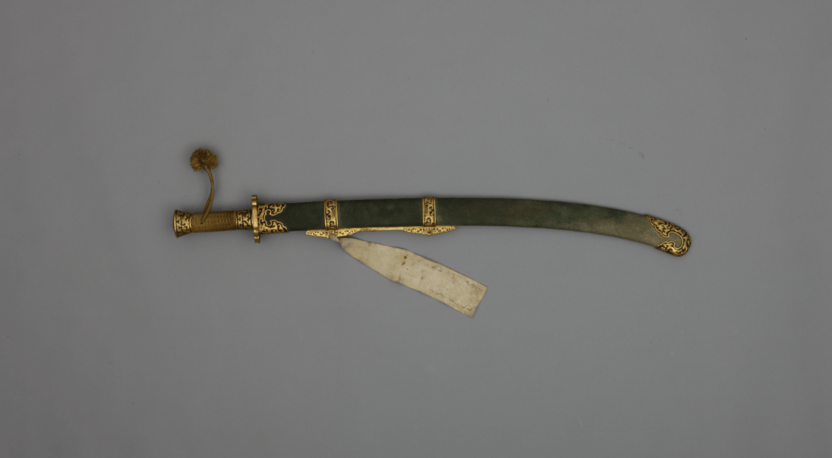 鐵柄鯊魚(yú)皮鞘瑩銠腰刀,清代。來(lái)源/故宮博物院