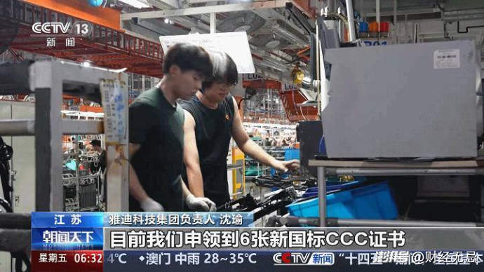財經(jīng)無忌觀察到,兩個月前舉行的廣州國際兩輪車展覽會上,頭部品牌們就已經(jīng)率先展出了一批符合新國標(biāo)的產(chǎn)品。據(jù)央視新聞7月的報道,雅迪等品牌也已有多款產(chǎn)品獲得新國標(biāo)3C認(rèn)證。