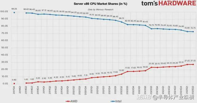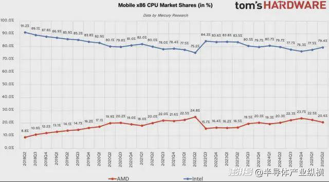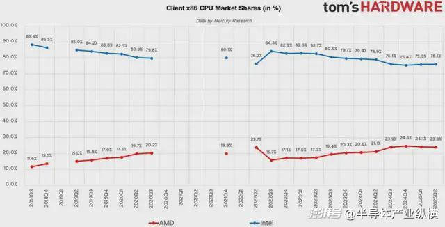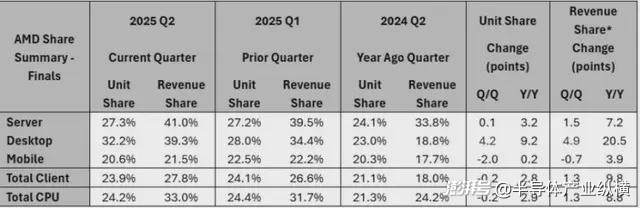 根據(jù)Mercury Research最新的2025年第二季度調(diào)查數(shù)據(jù)顯示,AMD在臺(tái)式機(jī)方面市場(chǎng)份額上迎來(lái)了又一波大幅度上漲。