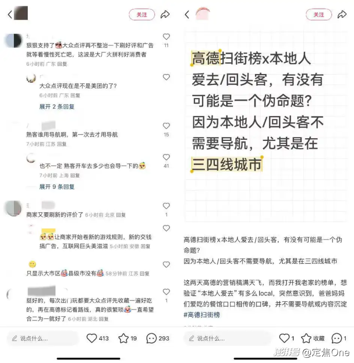 不看好的用戶也不少,疑慮主要集中在榜單依賴導航行為。有用戶評價,“本地人和回頭客根本不用導航,這是否是個偽命題?”“商家又要卷新的游戲規(guī)則”。