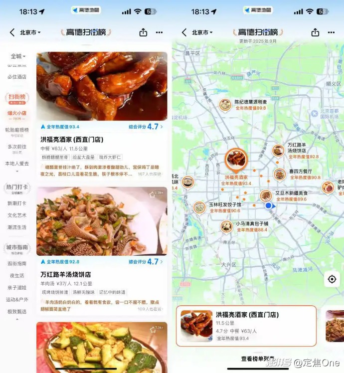 按照高德的說法,掃街榜的最大亮點有兩個: