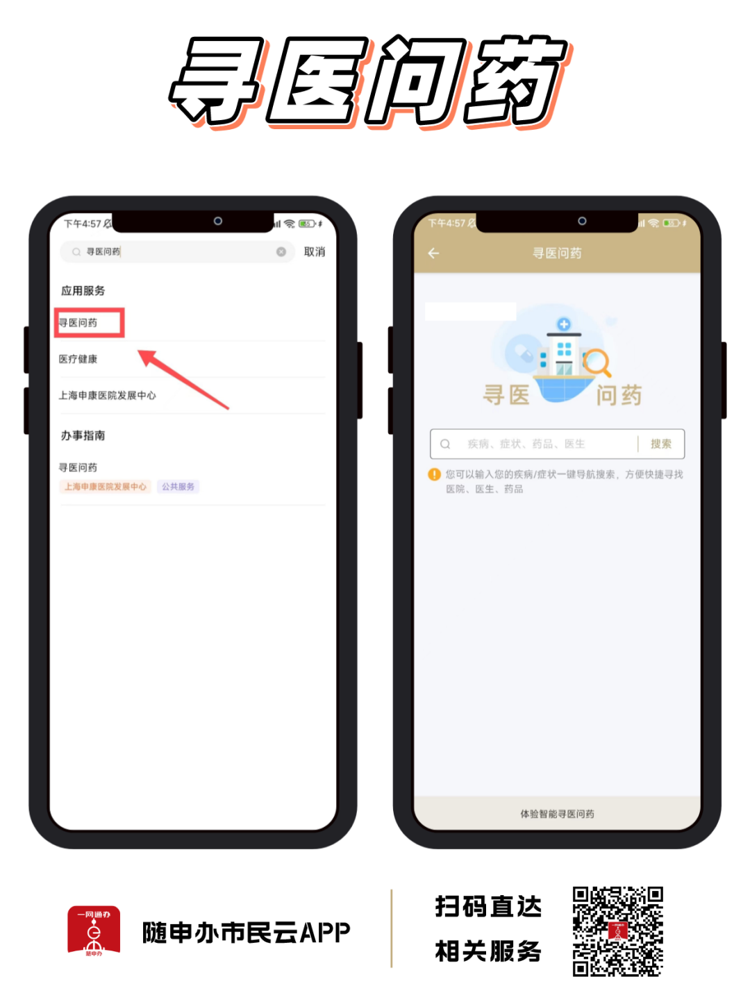 【尋醫(yī)問藥】服務(wù),可以根據(jù)輸入的病癥尋找醫(yī)生、醫(yī)院、藥品