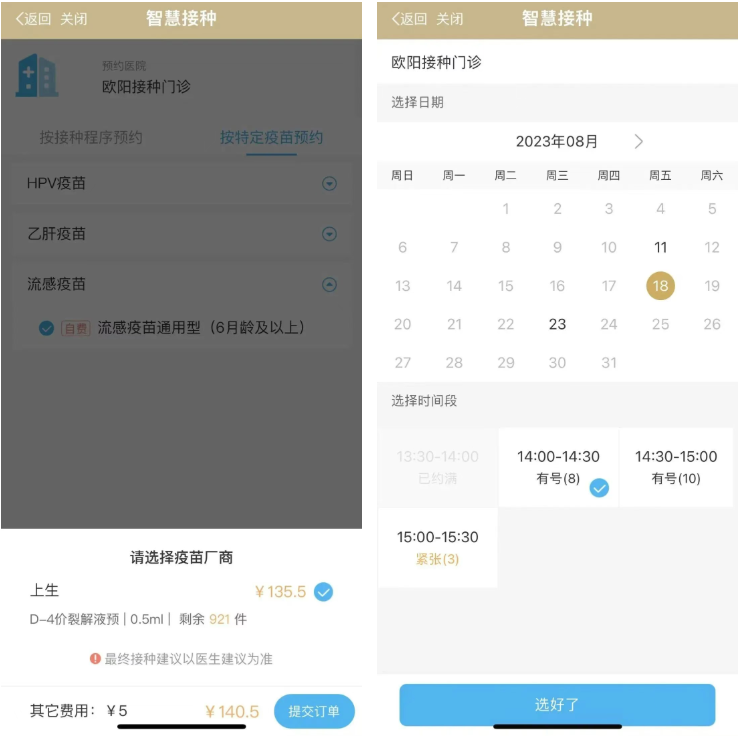 第三步:選擇【流感疫苗通用型(6月齡及以上)】,并選擇預(yù)約日期及時(shí)間。