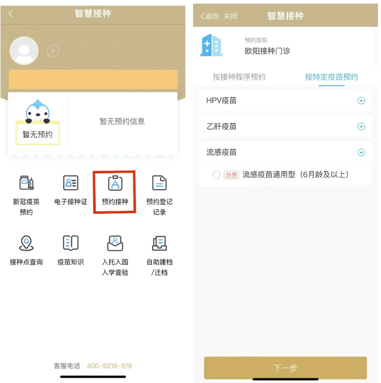 第二步:點(diǎn)擊【預(yù)約接種】-【按特定疫苗預(yù)約】