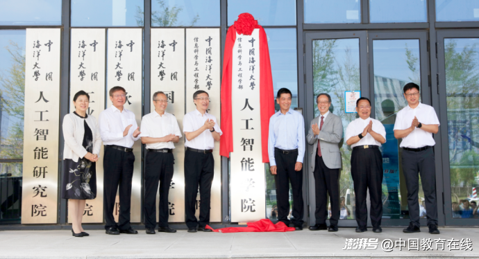 張峻峰、陳生、趙強(qiáng)福、程利偉、張占海、柳忠勤、劉軍萍、信息科學(xué)與工程學(xué)部部長董軍宇等共同為中國海洋大學(xué)人工智能學(xué)院揭牌。
