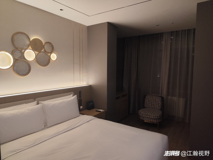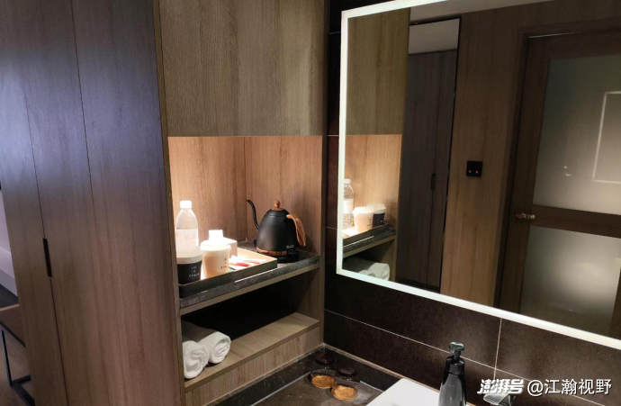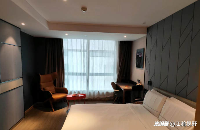 原木極簡(jiǎn)風(fēng)的大堂確實(shí)精致,但房間怎么看也就20平方米上下;浴室干凈清爽,但舟車勞頓想泡個(gè)澡的他在這里顯然找不到浴缸。