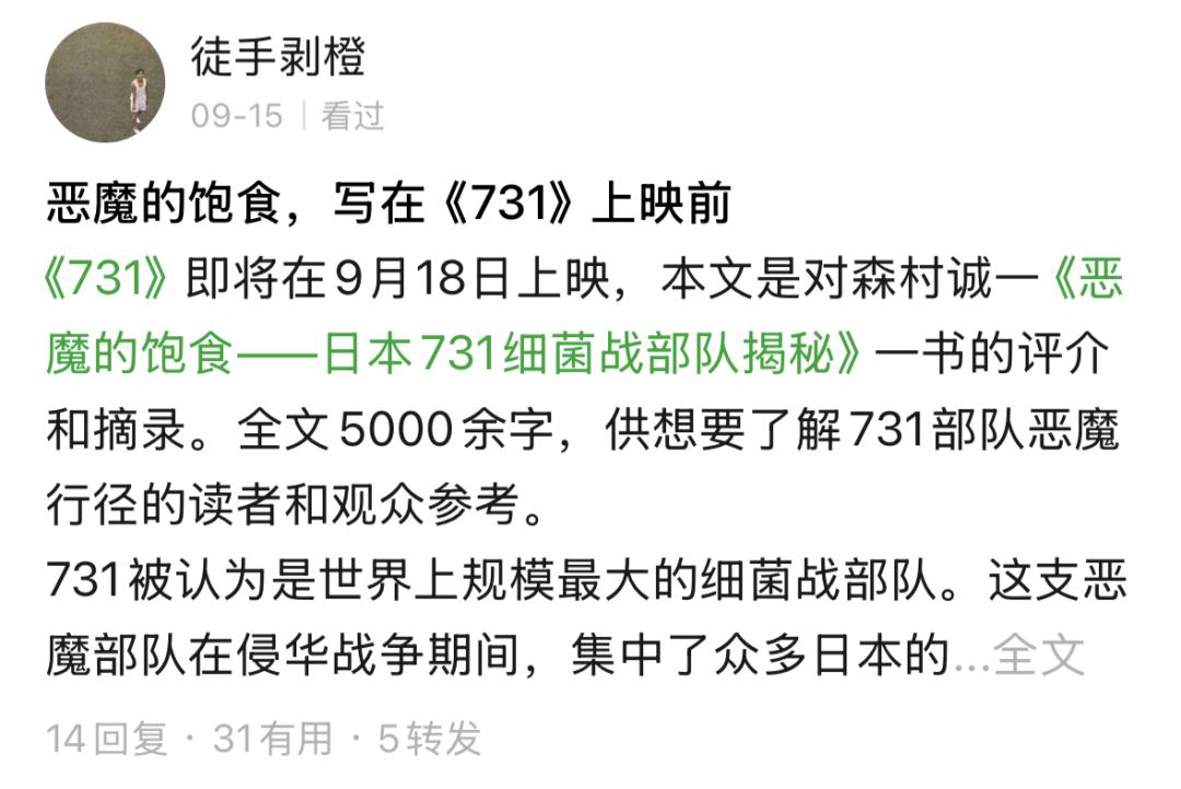 長(zhǎng)影出品《731》,首日票房已突破3億!