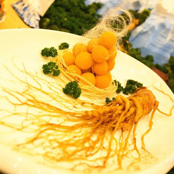撫松縣:人參雞湯、拔絲人參、特色燒烤、醬燜林蛙、酸菜餃子、黃家崴子黏火勺
