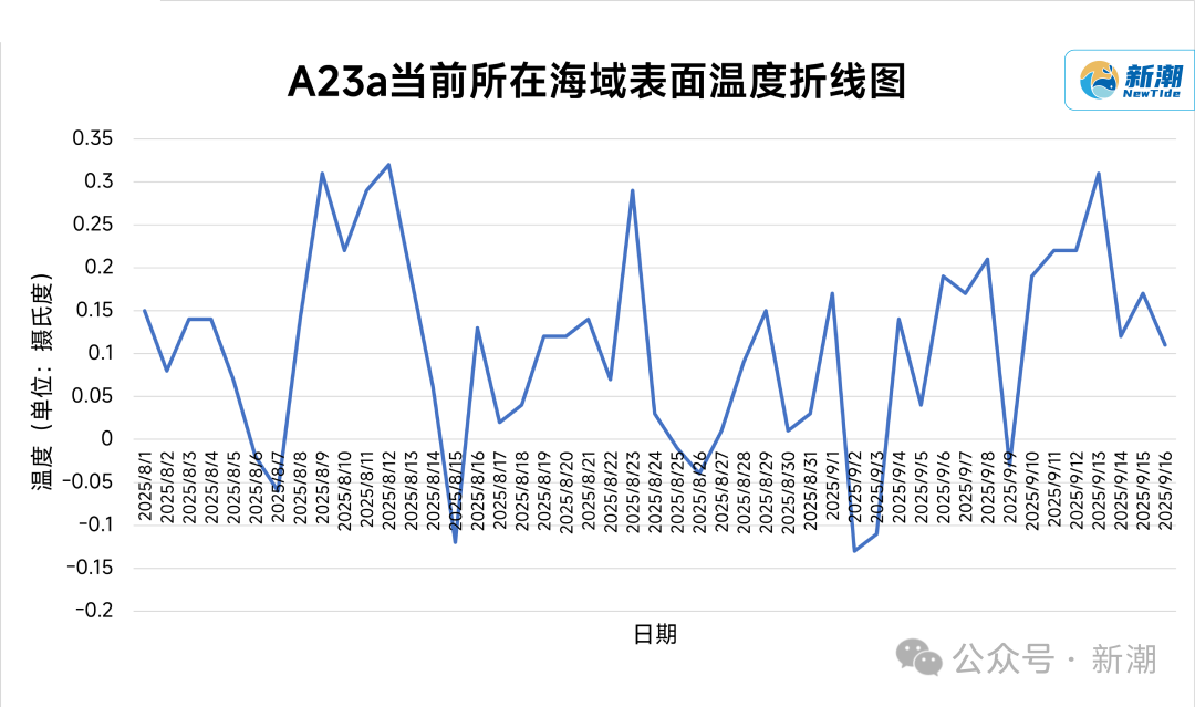 南半球的春天正在到來,在剛剛過去的15天里,這片海水的表面平均溫度相較上月升高了0.024℃,達(dá)到0.124℃。9月12日,海水的溫度曾短暫地跌至零下,但僅僅兩天后,海水溫度又恢復(fù)到了0.15℃。