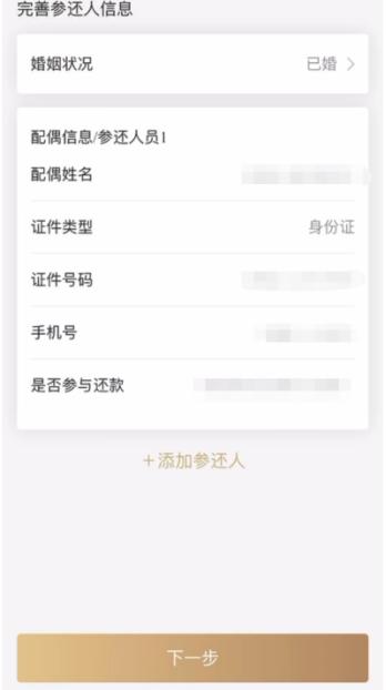 第三步:根據(jù)個(gè)人情況完善婚姻狀況信息,如存在其他參與提取還貸人員,完善參還人信息,點(diǎn)擊“下一步”。