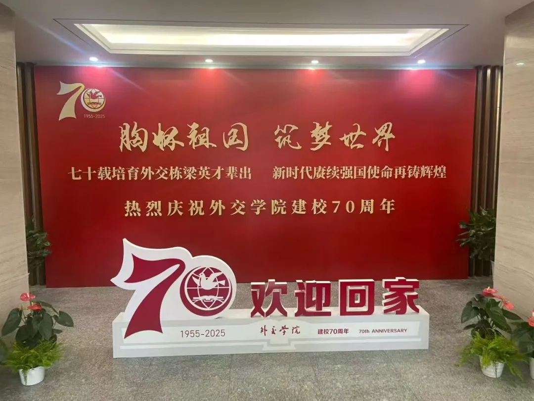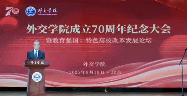 2025年9月19日,外交學院在京舉行建校70周年紀念大會。中共中央政治局委員、外交部長王毅出席并致辭。外交部黨委書記齊玉出席并講話。中宣部副部長王綱,中聯(lián)部副部長陸慷,博鰲論壇秘書長張軍,教育部副部長徐青森,北京市委常委、教育工委書記于英杰等領導出席大會。外交學院黨委書記王世廷發(fā)言,外交學院院長王帆主持大會。外交部美大司司長蔡偉作為外交學院校友代表發(fā)言,外交學院石毅教授作為教師代表發(fā)言。各有關部門代表,校友代表,外國駐華使節(jié)、各高校代表等約300人參加紀念大會。