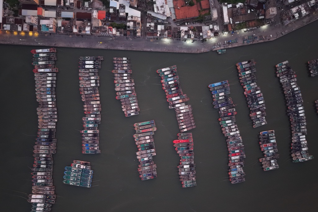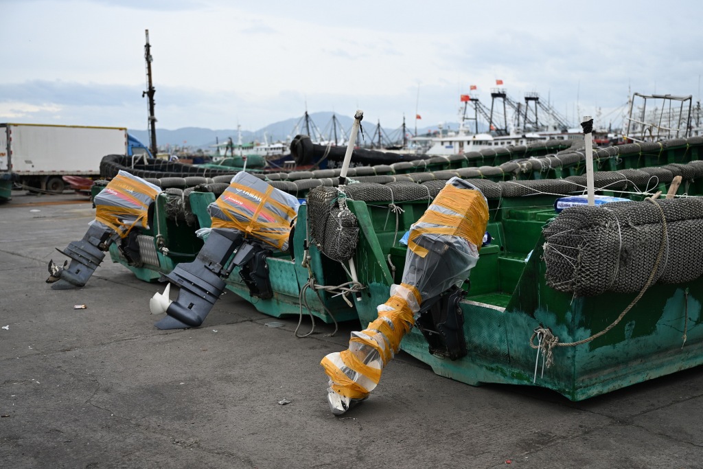 9月24日,廣東江門,停泊在港口避風(fēng)的船只。